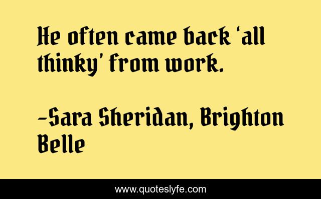 This page presents the quote "He often came back ‘all thinky’ from work.". Author of this quote is Sara Sheridan, Brighton Belle. This quote is about thinking, work, humour,.
