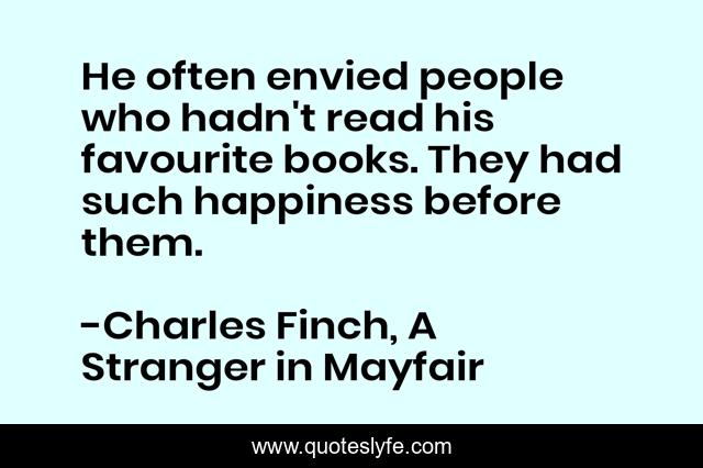 This page presents the quote "He often envied people who hadn't read his favourite books. They had such happiness before them.". Author of this quote is Charles Finch, A Stranger in Mayfair. .