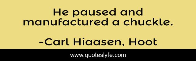 "Carl Hiaasen, Hoot Quotes." Quoteslyfe.com, 2025. Sat. 06 Dec. 2025. <https://www.quoteslyfe.com/quote/He-paused-and-manufactured-a-chuckle-279809>.