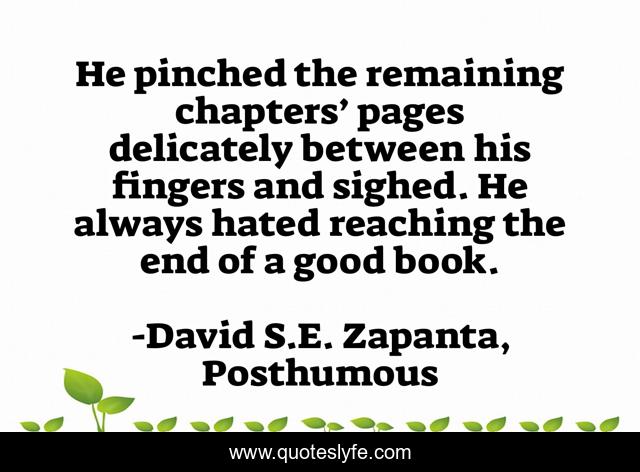 "David S.E. Zapanta, Posthumous Quotes." Quoteslyfe.com, 2025. Mon. 08 Dec. 2025. <https://www.quoteslyfe.com/quote/He-pinched-the-remaining-chapters-pages-delicately-251059>.