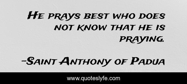 This page presents the quote "He prays best who does not know that he is praying.". Author of this quote is Saint Anthony of Padua. .