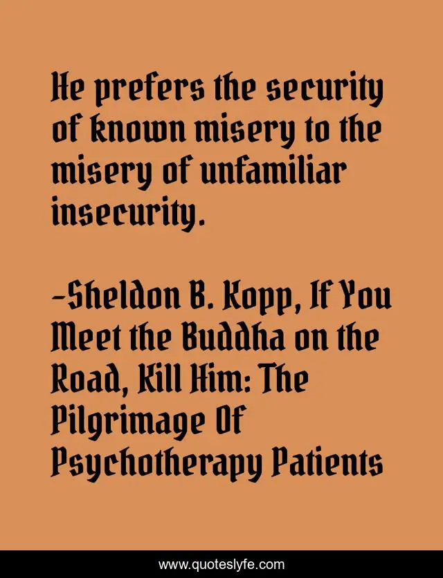 "Sheldon B. Kopp, If You Meet the Buddha on the Road, Kill Him: The Pilgrimage Of Psychotherapy Patients Quotes." Quoteslyfe.com, 2025. Mon. 08 Dec. 2025. <https://www.quoteslyfe.com/quote/He-prefers-the-security-of-known-misery-45101>.