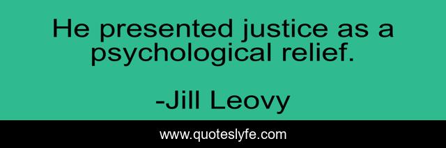 This page presents the quote "He presented justice as a psychological relief.". Author of this quote is Jill Leovy. This quote is about justice, relief,.