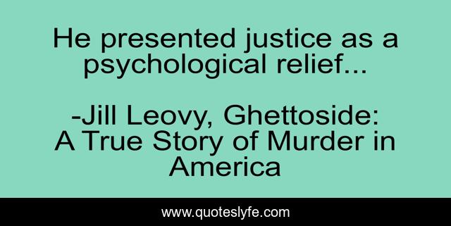 This page presents the quote "He presented justice as a psychological relief...". Author of this quote is Jill Leovy, Ghettoside: A True Story of Murder in America. This quote is about justice, relief,.