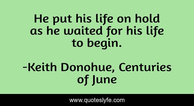 "Keith Donohue, Centuries of June Quotes." Quoteslyfe.com, 2025. Mon. 08 Dec. 2025. <https://www.quoteslyfe.com/quote/He-put-his-life-on-hold-as-105265>.