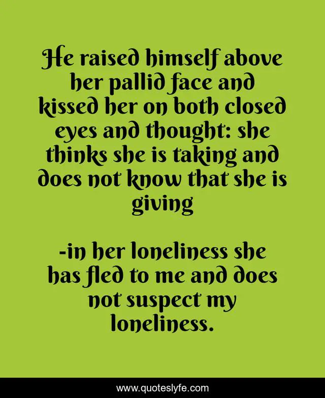 "in her loneliness she has fled to me and does not suspect my loneliness. Quotes." Quoteslyfe.com, 2025. Mon. 08 Dec. 2025. <https://www.quoteslyfe.com/quote/He-raised-himself-above-her-pallid-face-139292>.