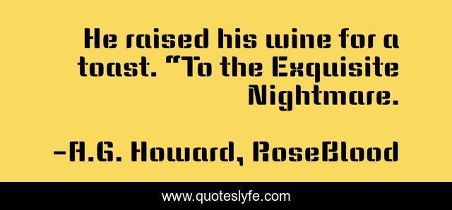 This page presents the quote "He raised his wine for a toast. “To the Exquisite Nightmare.". Author of this quote is A.G. Howard, RoseBlood. This quote is about opera, paris, fractured-retelling, vampires, phantom-of-the-opera,.
