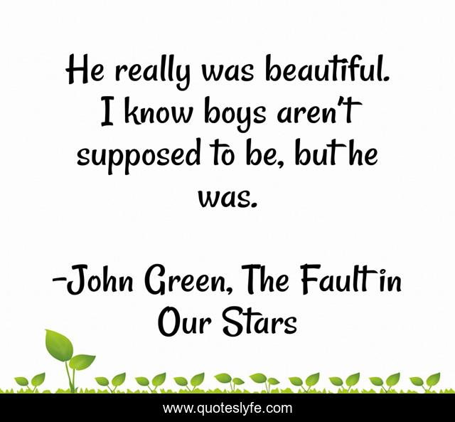 "John Green, The Fault in Our Stars Quotes." Quoteslyfe.com, 2025. Mon. 08 Dec. 2025. <https://www.quoteslyfe.com/quote/He-really-was-beautiful-I-know-boys-127341>.
