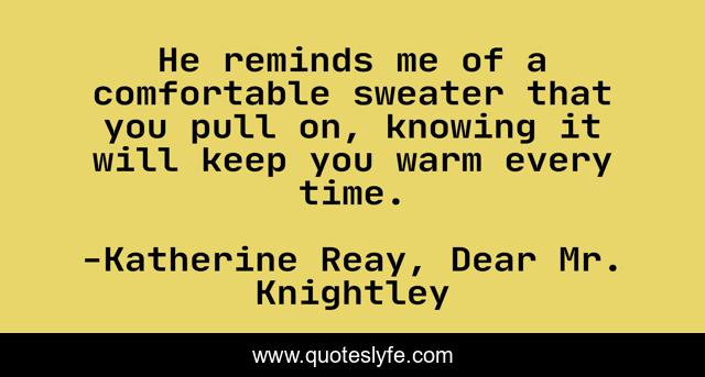 "Katherine Reay, Dear Mr. Knightley Quotes." Quoteslyfe.com, 2025. Fri. 05 Dec. 2025. <https://www.quoteslyfe.com/quote/He-reminds-me-of-a-comfortable-sweater-182567>.