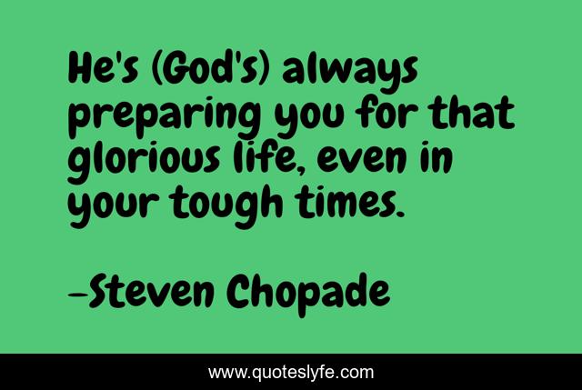 This page presents the quote "He's (God's) always preparing you for that glorious life, even in your tough times.". Author of this quote is Steven Chopade. .