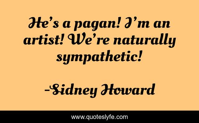 This page presents the quote "He’s a pagan! I’m an artist! We’re naturally sympathetic!". Author of this quote is Sidney Howard. This quote is about creativity, pagan, artists,.
