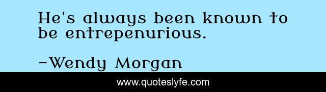 This page presents the quote "He's always been known to be entrepenurious.". Author of this quote is Wendy Morgan. .