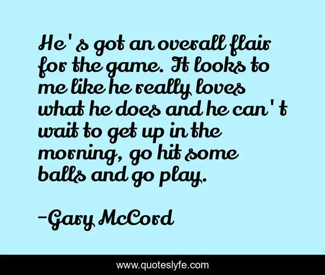 This page presents the quote "He's got an overall flair for the game. It looks to me like he really loves what he does and he can't wait to get up in the morning, go hit some balls and go play.". Author of this quote is Gary McCord. This quote is about me, game, morning,.