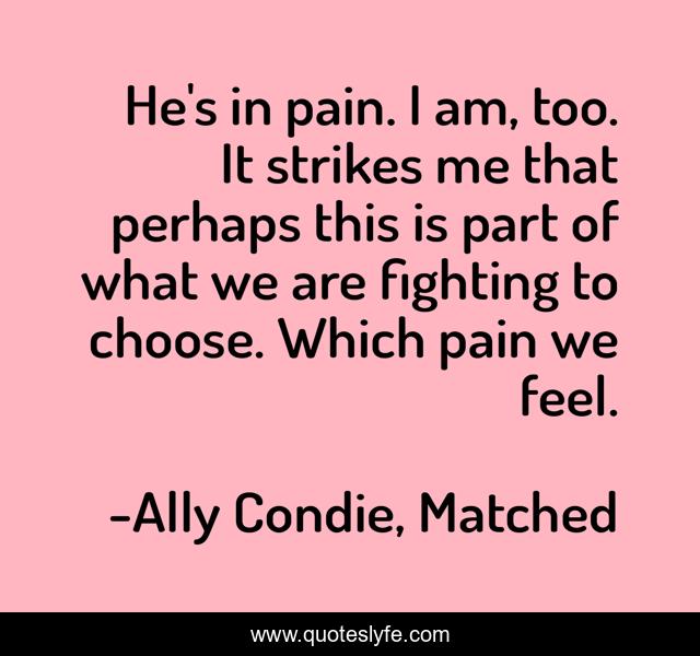 "Ally Condie, Matched Quotes." Quoteslyfe.com, 2025. Sat. 06 Dec. 2025. <https://www.quoteslyfe.com/quote/He-s-in-pain-I-am-too-54430>.
