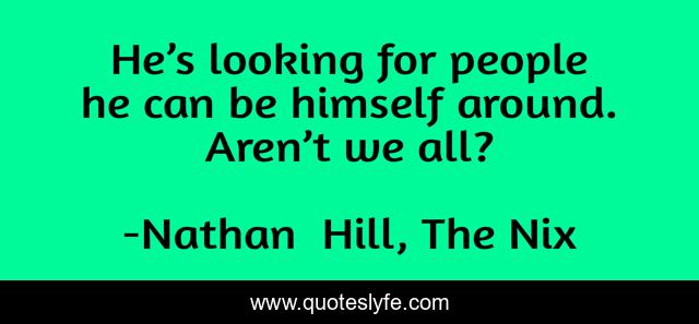 This page presents the quote "He’s looking for people he can be himself around. Aren’t we all?". Author of this quote is Nathan Hill, The Nix. .