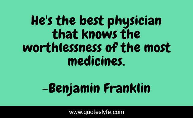 This page presents the quote "He's the best physician that knows the worthlessness of the most medicines.". Author of this quote is Benjamin Franklin. .