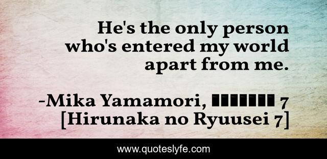 This page presents the quote "He's the only person who's entered my world apart from me.". Author of this quote is Mika Yamamori, ひるなかの流星 7 [Hirunaka no Ryuusei 7]. .