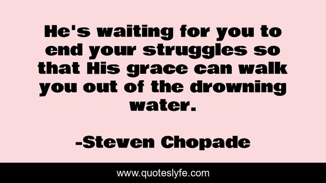 This page presents the quote "He's waiting for you to end your struggles so that His grace can walk you out of the drowning water.". Author of this quote is Steven Chopade. .