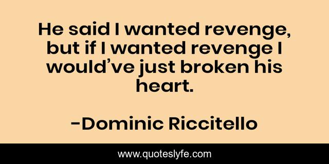 This page presents the quote "He said I wanted revenge, but if I wanted revenge I would’ve just broken his heart.". Author of this quote is Dominic Riccitello. This quote is about broken-heart, life, love, relationship, quote, revenge, hurt, sadness, thoughts,.