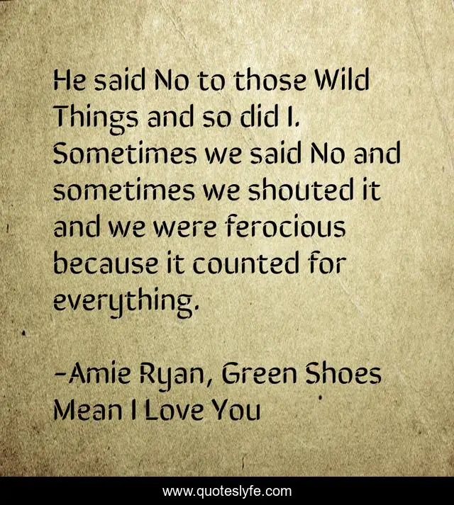"Amie Ryan, Green Shoes Mean I Love You Quotes." Quoteslyfe.com, 2025. Mon. 08 Dec. 2025. <https://www.quoteslyfe.com/quote/He-said-No-to-those-Wild-Things-99888>.