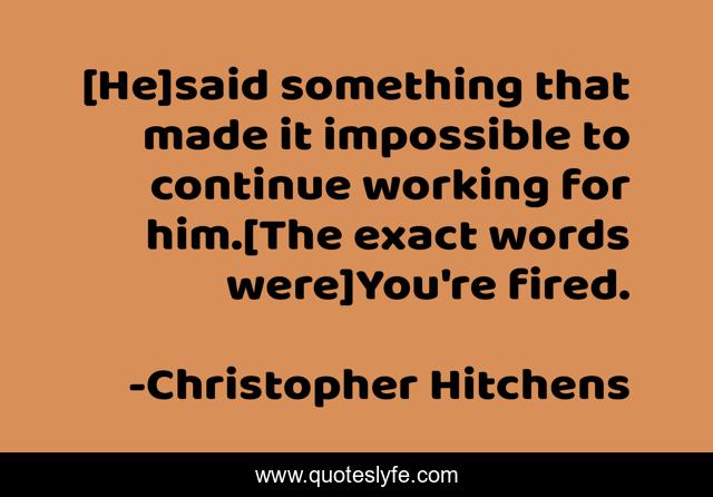 This page presents the quote "[He]said something that made it impossible to continue working for him.[The exact words were]You're fired.". Author of this quote is Christopher Hitchens. .