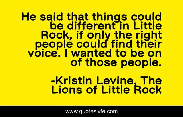 This page presents the quote "He said that things could be different in Little Rock, if only the right people could find their voice. I wanted to be on of those people.". Author of this quote is Kristin Levine, The Lions of Little Rock. .