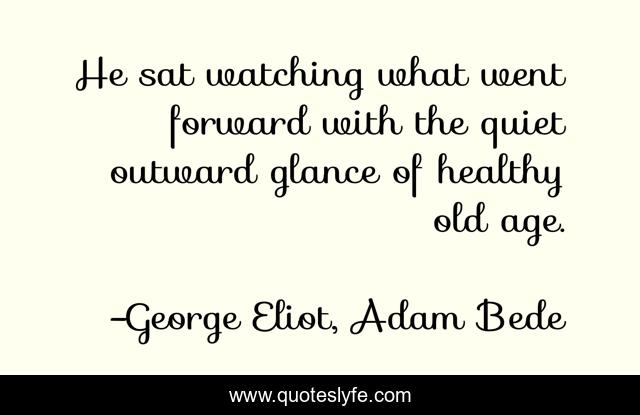 This page presents the quote "He sat watching what went forward with the quiet outward glance of healthy old age.". Author of this quote is George Eliot, Adam Bede. This quote is about maturity, contemplation,.