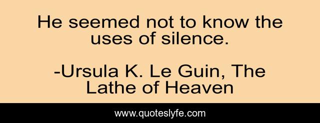 This page presents the quote "He seemed not to know the uses of silence.". Author of this quote is Ursula K. Le Guin, The Lathe of Heaven. .