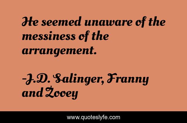 This page presents the quote "He seemed unaware of the messiness of the arrangement.". Author of this quote is J.D. Salinger, Franny and Zooey. .
