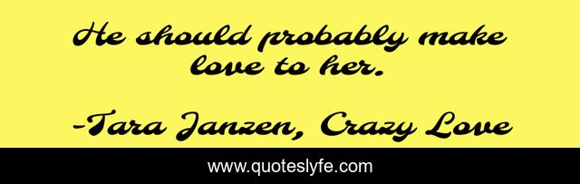 "Tara Janzen, Crazy Love Quotes." Quoteslyfe.com, 2025. Sat. 06 Dec. 2025. <https://www.quoteslyfe.com/quote/He-should-probably-make-love-to-her-18238>.