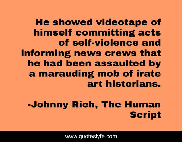 "Johnny Rich, The Human Script Quotes." Quoteslyfe.com, 2025. Sun. 07 Dec. 2025. <https://www.quoteslyfe.com/quote/He-showed-videotape-of-himself-committing-acts-243840>.