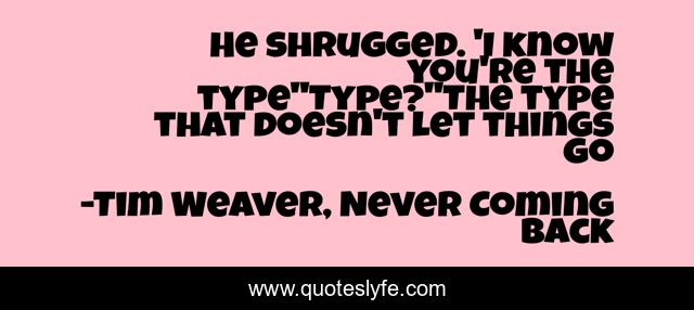 This page presents the quote "He shrugged. 'I know you're the type''Type?''The type that doesn't let things go". Author of this quote is Tim Weaver, Never Coming Back. This quote is about no-surrender, determination,.