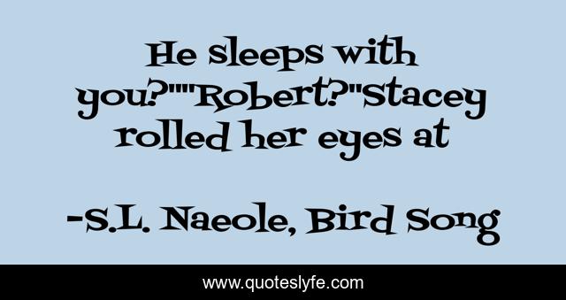 This page presents the quote "He sleeps with you?""Robert?"Stacey rolled her eyes at". Author of this quote is S.L. Naeole, Bird Song. This quote is about robert, grace, stacey,.