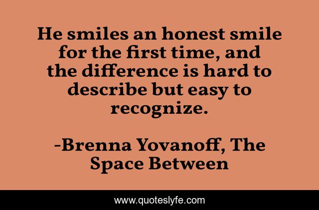 "Brenna Yovanoff, The Space Between Quotes." Quoteslyfe.com, 2025. Sun. 07 Dec. 2025. <https://www.quoteslyfe.com/quote/He-smiles-an-honest-smile-for-the-166325>.
