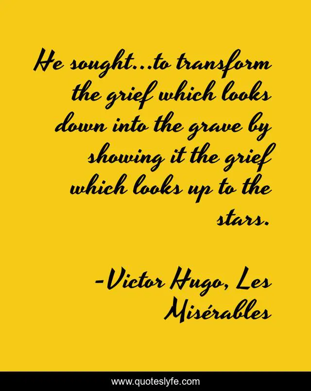 This page presents the quote "He sought...to transform the grief which looks down into the grave by showing it the grief which looks up to the stars.". Author of this quote is Victor Hugo, Les Misérables. .