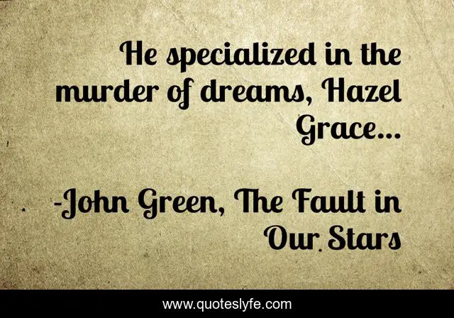 "John Green, The Fault in Our Stars Quotes." Quoteslyfe.com, 2025. Fri. 05 Dec. 2025. <https://www.quoteslyfe.com/quote/He-specialized-in-the-murder-of-dreams-6832>.