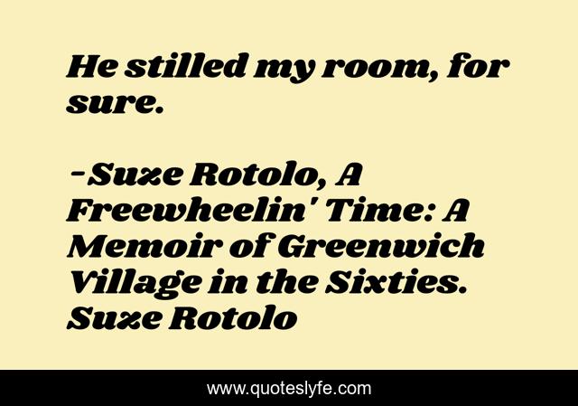 "Suze Rotolo, A Freewheelin' Time: A Memoir of Greenwich Village in the Sixties. Suze Rotolo Quotes." Quoteslyfe.com, 2025. Mon. 08 Dec. 2025. <https://www.quoteslyfe.com/quote/He-stilled-my-room-for-sure-78975>.