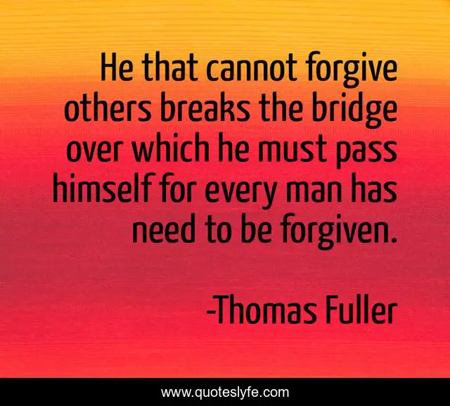 "Thomas Fuller Quotes." Quoteslyfe.com, 2025. Fri. 05 Dec. 2025. <https://www.quoteslyfe.com/quote/He-that-cannot-forgive-others-breaks-the-315853>.