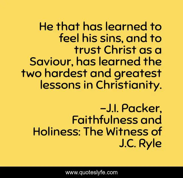 This page presents the quote "He that has learned to feel his sins, and to trust Christ as a Saviour, has learned the two hardest and greatest lessons in Christianity.". Author of this quote is J.I. Packer, Faithfulness and Holiness: The Witness of J.C. Ryle. This quote is about sin, christianity,.