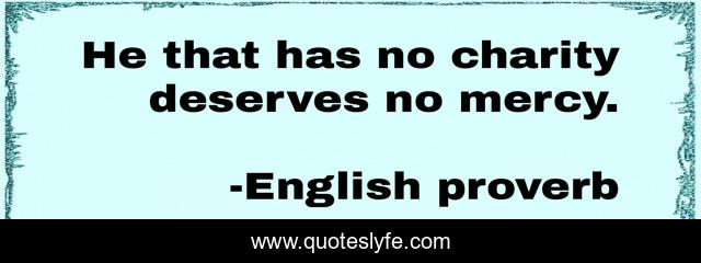 This page presents the quote "He that has no charity deserves no mercy.". Author of this quote is English proverb. This quote is about helping, people,.