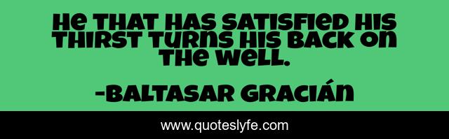This page presents the quote "He that has satisfied his thirst turns his back on the well.". Author of this quote is Baltasar Gracián. This quote is about desire, satisfaction, satisfied,.