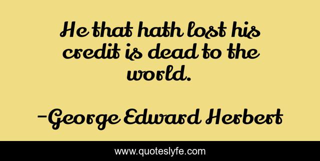 This page presents the quote "He that hath lost his credit is dead to the world.". Author of this quote is George Edward Herbert. .