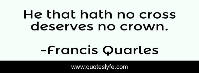 This page presents the quote "He that hath no cross deserves no crown.". Author of this quote is Francis Quarles. .