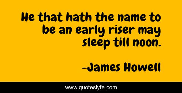 This page presents the quote "He that hath the name to be an early riser may sleep till noon.". Author of this quote is James Howell. This quote is about celebrities, fame,.