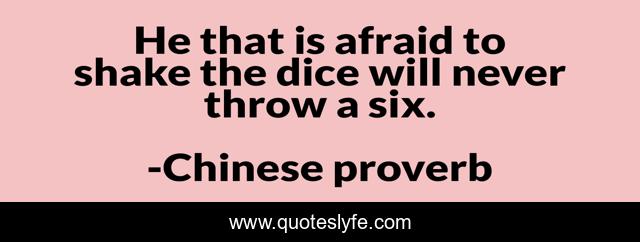 This page presents the quote "He that is afraid to shake the dice will never throw a six.". Author of this quote is Chinese proverb. This quote is about success, happiness,.