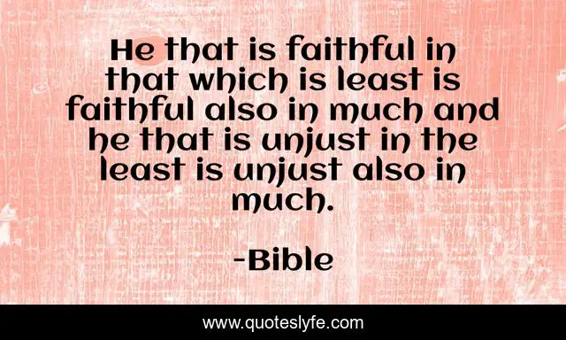 This page presents the quote "He that is faithful in that which is least is faithful also in much and he that is unjust in the least is unjust also in much.". Author of this quote is Bible. .