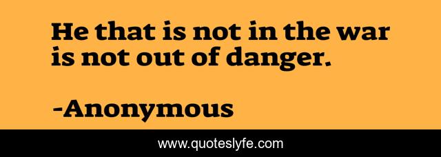 This page presents the quote "He that is not in the war is not out of danger.". Author of this quote is Anonymous. .