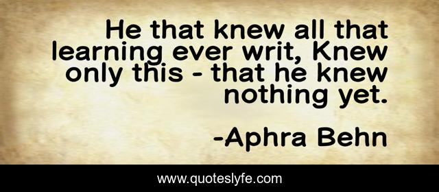 This page presents the quote "He that knew all that learning ever writ, Knew only this - that he knew nothing yet.". Author of this quote is Aphra Behn. This quote is about nothing, only, knew,.