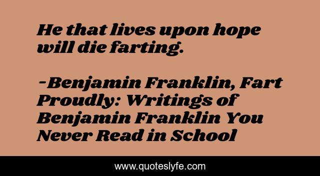 "Benjamin Franklin, Fart Proudly: Writings of Benjamin Franklin You Never Read in School Quotes." Quoteslyfe.com, 2025. Sat. 06 Dec. 2025. <https://www.quoteslyfe.com/quote/He-that-lives-upon-hope-will-die-250064>.