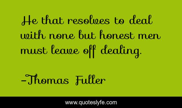 This page presents the quote "He that resolves to deal with none but honest men must leave off dealing.". Author of this quote is Thomas Fuller. .